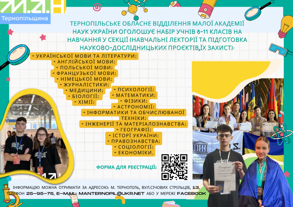 🌍 Запрошуємо приєднатися до міського відділення Тернопільського обласного комунального територіального відділення Малої академії наук України.