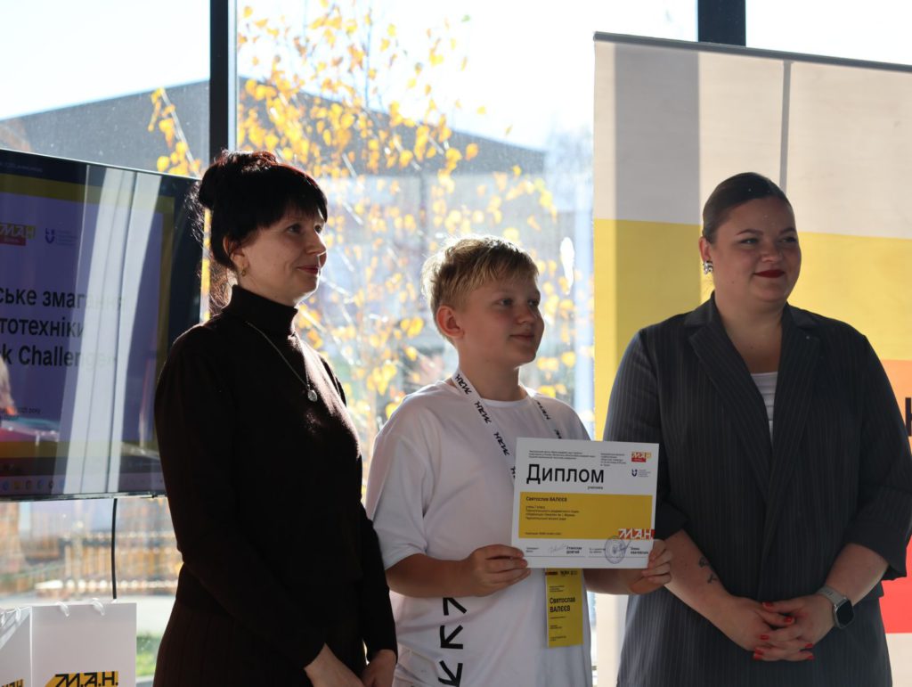 Учні Тернопільського обласного відділення МАН України отримали дипломи учасників змагань. Одна з команд була додатково відзначена подарунками за оригінальність свого робота, що підкреслило їхній творчий підхід і нестандартне технічне рішення.